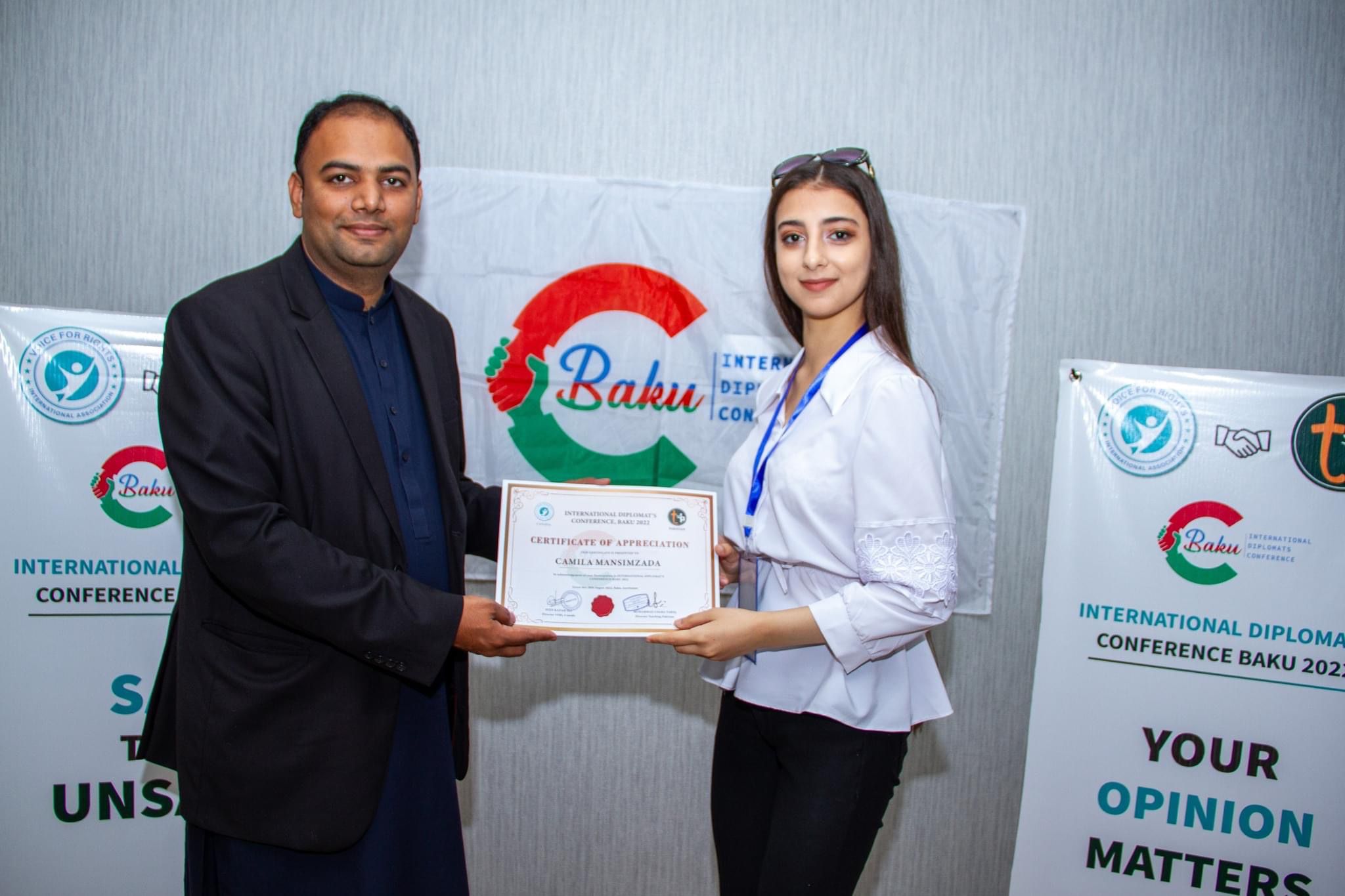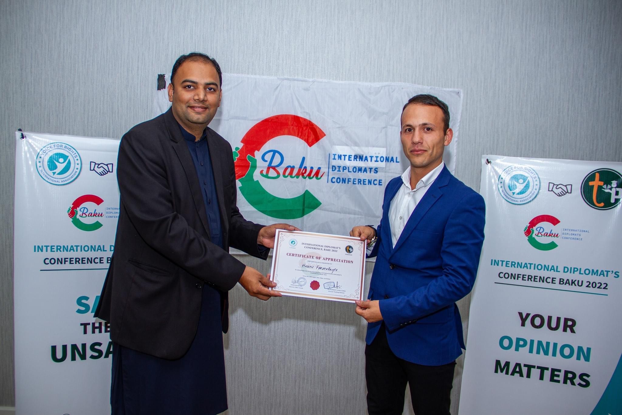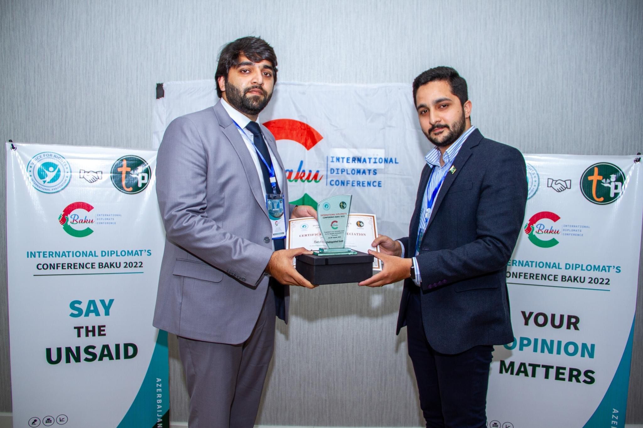 On 26th August 2022, the International Diplomat’s Conference was organized at Baku, Azerbaijan by a joint collaborative effort of Teaching Pakistan and Voice for Rights International Association Canada. The 3 day event focused on three major themes i.e. International Law and Justice, Freedom of Speech, Drugs education and Global economic instability. The main idea behind this international event was to gather social activists from different communities and vast backgrounds and collectively provide them with the opportunity to discuss the root causes of these issues and find means to tackle these matters.